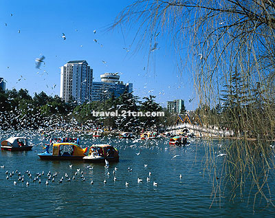 这一年的初冬,一大群红嘴巴的鸟儿,拍打着白色的翅膀,从遥远的西伯利亚起飞,越过无数的高山大川,最后在这座城市中心的翠湖畔找到了永久的过冬栖息地。