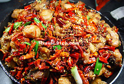 在酒店里吃到地道的四川菜,浓油赤酱,红艳的朝天椒,绿色的野花椒粒,深褐色的黑胡椒。身边是快乐的人群,陌生的四川话,心花怒放的表情,那种和手中筷子打成一片的专注让人不由自主地快乐,于是放下顾虑,放心大胆地吃,直到额头上细细地冒汗。