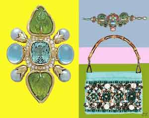 Elizabeth Gage对于欧洲的时尚追求者来讲,早已不是陌生的名词,那些珠宝给人的视觉上的闪烁,远远比奥斯卡红毯上频频的闪光灯能捕捉目光的聚焦。作为人们心目中最浪漫之一的珠宝制造商,在夏季里,用莹蓝脆绿配上对印度文化的溯源,是公众发布会上最杰出的精彩演说。绿玉、电气石、橄榄石、班蓝方石和钻石的集合,镶嵌在黄金的框架里,堪称一绝。