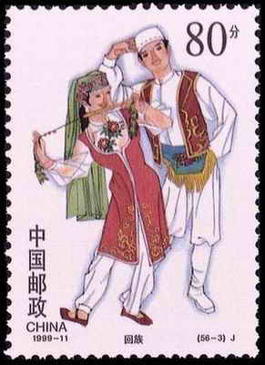 回族男子在节日或遇有红白喜事时,喜戴白色小帽,妇女则戴披搭式巾帕,巾帕前端遮至下巴,后面披垂于肩头。
