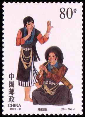 珞巴族妇女喜穿麻布织的对襟无领窄袖上衣,外披一张小牛皮,下身围上略过膝部的紧身筒裙,小腿裹上裹腿,两端用带子扎紧。她们很重视佩戴装饰品,除银质和铜质手镯、戒指外,还有几十圈的蓝白颜色相间的珠项链,腰部衣服上缀有许多海贝串成的圆球。珞巴族妇女身上的饰物可多达数公斤重,可装满一个小竹背篓。这些装饰品是每个家庭多年交换所得,是家庭财富的象征。