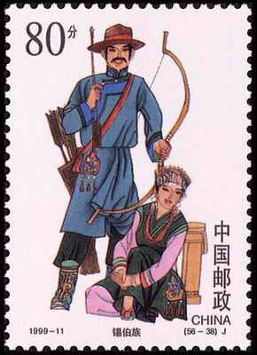清代,锡伯族男子用青、蓝、棕等色衣料做成左右开衩的大襟长袍和对襟短袄,外罩坎肩,头戴圆顶帽。