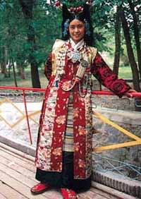 卫藏包括拉萨、日喀则和山南等地域。这一带妇女的头饰大同小异,而且比较趋于明朗化,发饰简单易梳,各种头饰注重精巧、名贵。