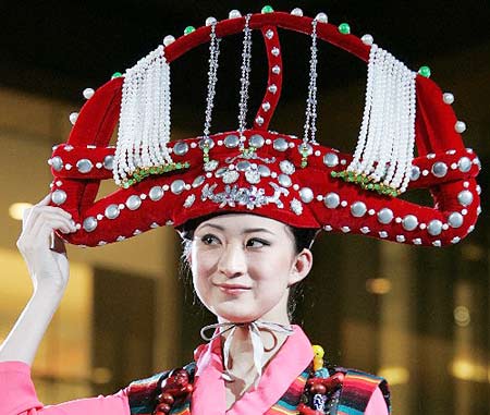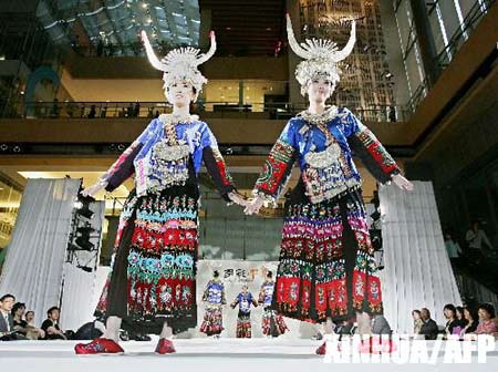 ”时装展示中,观众们欣赏到了中国各民族的服装。