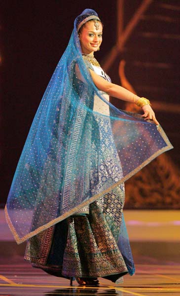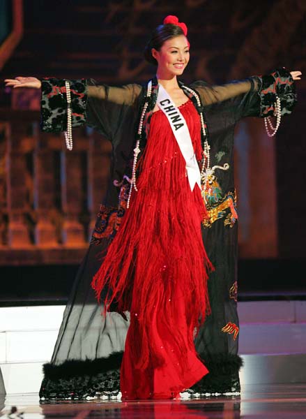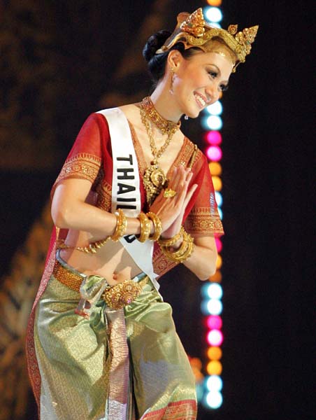 当地时间5月25日,泰国首都曼谷,2005年度环球小姐大赛民族服装竞赛,来自81个国家的佳丽在比赛中展示了各自的民族服装,最终泰国小姐获得第一名。本届环球小姐总决赛将于5月31日在曼谷举行。