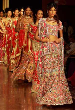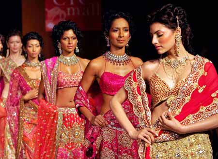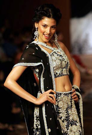 8月16日,在印度首都新德里,模特展示服装大师Manish和Payal Chhabra设计的2005秋冬时装。