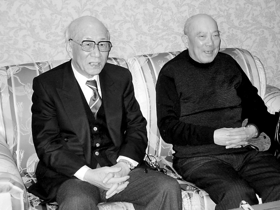 培罗蒙第一代传人——87岁的戴祖贻(左)和89岁的李佩鹤在耄耋之年再次聚首申城