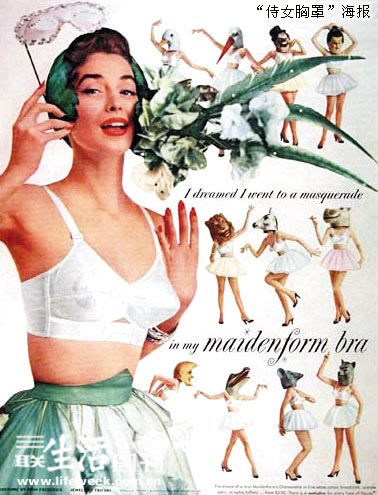 胸罩证明了战争与缪斯可以共存。“一战”一爆发,德国和法国也相应发起了“束腰”对“胸罩”的大战。一幅刊登在德国《莱比锡新闻》上的广告痛斥巴黎人发明的“胸罩”是危险的,强力推销真正的德国精神束腰,它直扣至腰部,给乳房盔甲般的支撑。不过,胸罩大战跟真实战争一样,法国人取得了最后的胜利。“一战”后是史上少数平胸风潮之一,社交女孩努力显得平板,好让长串珍珠项链顺身而下,人造丝也问世,胸罩价格低廉,要勾引的贵族男性日渐破落,女性必须外出工作,便利的胸罩成为首选。接着是“二战”。美国政府号召女性抛弃藏有大量钢丝的束腰,以支援战场,据说3年间节省了2.8万吨钢材,够造两艘军舰。正逢华纳兄弟公司刚拿到胸罩专利,适时推出全布胸罩,还给信鸽设计了布背心,大发了一笔战争财。