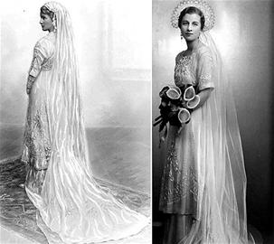 第一次穿这件婚纱的人是夏洛特的曾祖母保利娜?费西安,她1910年在美国俄勒冈州波特兰市和英国籍医生威廉?沃森结婚。