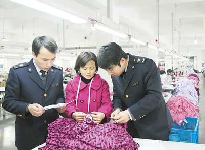 自2009年《法检目录》调整以来,宁波鄞州备案出口针织服装企业已逾650家,目录内相关产品出口额突破5.5亿美元。鄞州检验检疫局根据各企业实际问题提出针对性指导,宣传国外市场相关产品技术法规要求,积极向企业宣传贸易相关知识,帮助企业规避出口贸易风险。图为鄞州局检验人员深入企业进行监管。