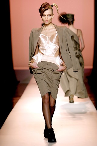 紧身胸衣造型在内衣外穿中最为常见,也是最能体现女性体型和性感的一种样式。这一季不但把胸衣穿进了男装西服中还穿在裙装外面,十分值得玩味。