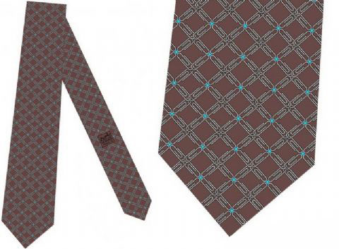 爱玛仕Hermès领带于1949面世, 每年都生产两个全新系列, 而每一系列大约由三十个至三十五个不同的设计组成,由于每个设计都有十二至二十四款的颜色组合,所以每年都有大约一千条全新的领导面世, 起初,投入市场的领带设计多以几何图案表现骑术活动为主。如今的款式有活泼的动物或以日常生活事物为主题。