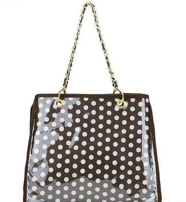 甜美的波点图案,永远都是充满甜蜜的流行元素,有着一股浪漫的少女情怀,包包外层透明质地,让它顿时变得亮彩夺目。具有独特造型风格的配件单品,为你的搭配抢眼度加分不少哟!