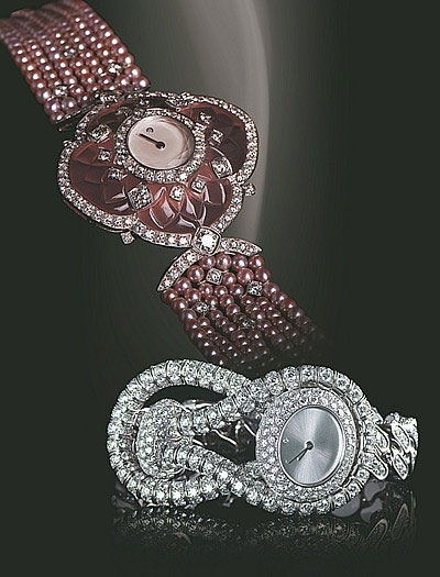 珍珠的独特之处在于她是珠宝家族中唯一无须雕琢的天然珠宝。天生圆润细腻光滑,高贵典雅又温柔含蓄。正因珍珠那温和雅致的光泽,与柔软天然的质地,让它得以成为卡地亚所不可或缺的材质。贴身的精美珍珠装饰表带,能够衬托出女性那柔美高贵的气质。卡地亚巧妙地将珍珠与钻石结合在一起,令创造出的制品成为对女性无意流露出的万种风情而献出的无限赞美。