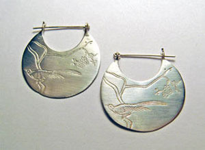 雕刻燕雀图案的半月状耳环颇具异域风情