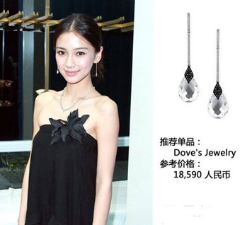 Angelababy水滴形钻石耳饰美观大方尽显轻熟女优雅。