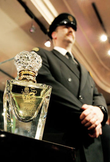 40万美金在你的概念中等同于什么样的价值?是一幢豪宅还是一辆名车?作为当今最昂贵的香水,“Imperial Majesty”每瓶价值215000美元,而装它的瓶子价格也高达175000美元——这一价格包括送货上门,送货的是一辆宾利。此款香水全球仅推出10瓶——5瓶在伦敦Harrods百货公司出售,另5瓶则上柜于纽约的Bergdorf Goodman百货公司。