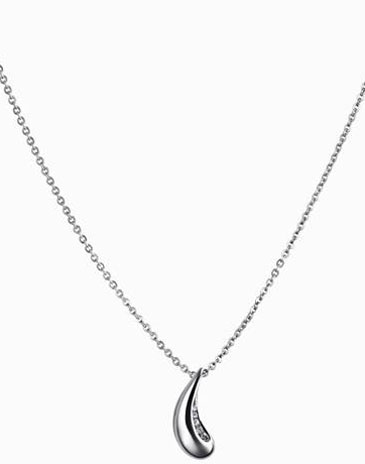 此款吊坠拉长了水滴的形状,将水滴降落瞬间不断变幻的形状浪漫地演绎出来。它慢慢地集聚,用尽全身力量,最后重重的落下。古语有“上善若水”之说,水柔若无骨,但却能水滴石穿,至柔中带有无可匹敌的力量,如同平静的爱情,无声无息,但如永不干涸的泉水般从不间断,让生命有了不同的意义。