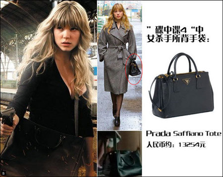 女杀手Léa Seydoux(蕾雅·赛杜)在剧中从不离身的Prada Saffiano Tote黑色手包的出现引起了不少的关注,可谓是让众多女观众们趋之若骛,同时也增加了更多的看点。
