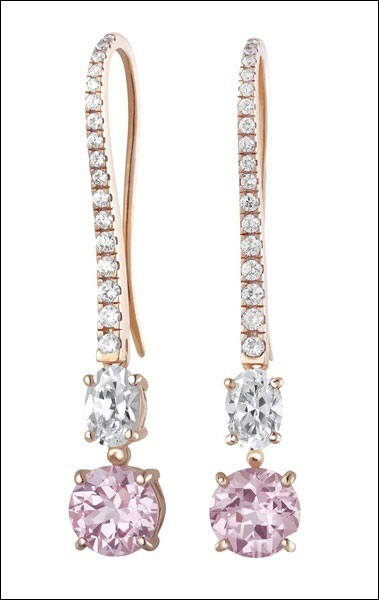 Dulce耳环每边以单颗3.7克拉粉红色圆形晶钻,配上1.4克拉白色椭圆形晶钻,而玫瑰金底座设计更将女性甜美推向极致,演释可爱女生的梦幻浪漫。Dulce吊坠及戒指同样以粉红色圆形晶钻及白色椭圆形晶钻组合而成。