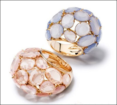 Capri系列玫瑰金镶嵌蔷薇石、玉髓戒指