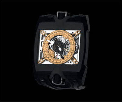 带有同样十字装饰的双表冠设计令人们想起安提凯希拉装置的原型。6点位置的表冠用于上链和设置时间,12点位置的表冠则用来校正装置的天文指数(通 过月相定位太阳的位置)。由于显示的数据非常复杂,双表冠都有专门的设计以确保初始设置无法更改。微喷砂钛质表壳将这款非凡的机械腕表很好地保护起来。表 壳经过多面抛光,使其与蓝宝石水晶镜面相得益彰,专门设计的天然橡胶表带完美展现其独一无二的尊贵和卓越。