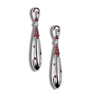 de GRISOGONO Gocce系列耳环,白色K金镶嵌92颗红宝石重7.25克拉,2颗白钻重0.20克拉。