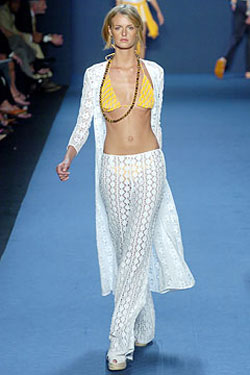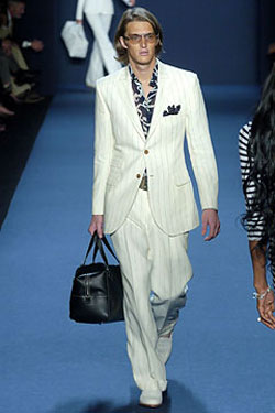 2003夏季的Tommy以休闲度假为主题,展现一派兼具实穿性与轻松休闲的度假心情,给人一种远离城市的优游自在。今季推出的男装以夏日海滩度假风格为设计灵感。简单素雅的圆领衫,本季当红的V领T恤或是宽版抽绳卡其裤,带有夏威夷风情的印花衬衫,展现了Tommy少见的清新风格。而他的配件,从色彩斑斓的下水服饰和他的海滩凉鞋,更表现了Tommy的高贵质感。