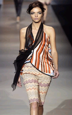 以针织著称的米索尼品牌有着典型的意大利风格,几何抽象图案及多彩线条是米索尼的特色,优良的制作、有着强烈的艺术感染力的设计、鲜亮的充满想象的色彩搭配、使米索尼时装不只是一件时装,更象一件艺术品,因而受到全球时装界的广泛关注。艺术品是不会过时的,你买了米索尼时装在以后的年度里仍可穿着。