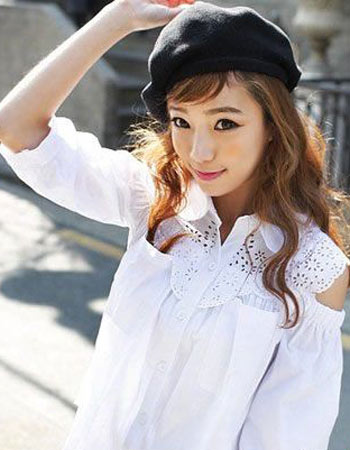 每个长大的女生似乎都有小女孩情结,这款娃娃款衬衫似乎就能让你更加充满童真呢?花朵蕾丝勾制而成的衣领,让衬衫摆脱了枯燥感。微露香肩的设计,除了能让造型更显清爽外,似乎又带出了女性的清纯诱惑力,让人感觉更加独特。