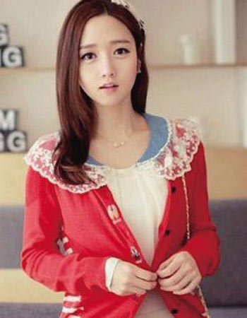 领口的蕾丝花边营造甜美公主范,还可以随意拆卸的哦。开衫的背部是条纹面料,让背后与前身呈现不一样的风景。