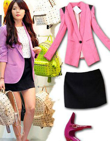 韩版粉色外套 可爱性感OL高调起来