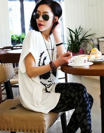 个性十足的墨镜人像图案T恤,气质美女最爱的欧范单品,宽松的设计怎么穿都很有范。