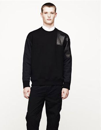 Alexander Wang2012春夏男装新款系列搭配,今年的设计可以从中看到充满了强烈对比感的夹克、绒衣更加体现男孩惯有的不羁个性;粗纹斜布料的短裤更具备舒适性;外套皮革拼接的设计元素更加率性直接的表达出了对男装的自由定义。