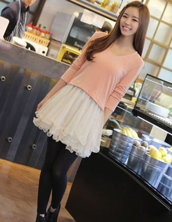 吊带蓬蓬连衣裙,四月小清新的味道,今年流行两件套连衣裙,可以分开穿也可以搭配成不同的风格哦,外面宽松的T恤,内搭的是吊带蓬蓬连衣裙,特别甜美可爱。