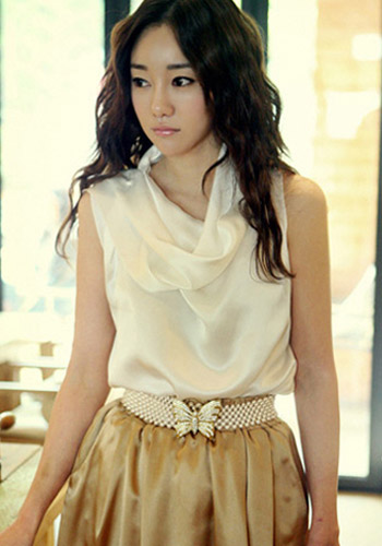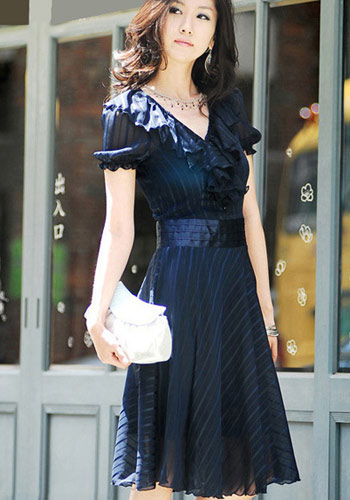 波浪起伏的裙摆,膝盖的长度,尽显MM高挑身材,修长美腿。裙摆非常大,衬上水雾飘渺的材质,轻盈飘逸,一种静静的展露温柔气质的美。