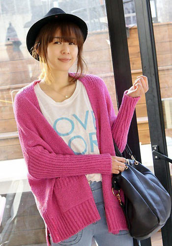 蝙蝠袖设计很个性哦,混毛针织质料穿着很舒适哦,款式设计很随意白搭哦。