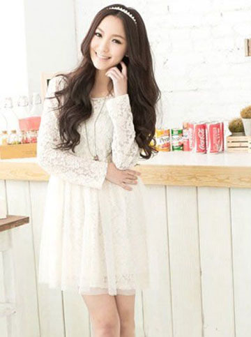 纯洁无暇,优雅的如同女王般让人膜拜!这款蕾丝裙的不同之处就在于它的印花啦,具有立体感的印花看上去更加的活灵活现!透明感的长袖给你留下小小性感的印象,网纱和蕾丝相搭配,营造俏皮少女的清新气质!白色不会挑肤色,干净清爽惹人喜爱!