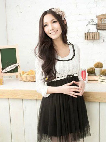 洁白如霞,透明如丝,蕾丝能够轻而易举的将女生的梦幻以及优雅气质诠释到极致!黑白经典色的搭配,不庸俗却表达除了低调的华丽感!蕾丝与网衫相互合作,制造出黄金分割线,让你的高挑身材展露无遗!搭配中分的长波浪卷发,优雅又温柔!