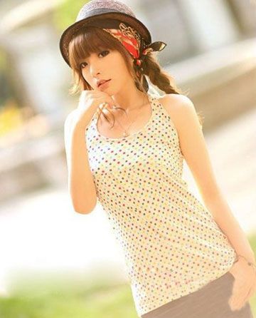 清新可爱的彩色波点,让你清爽一夏天。凉快的挂脖式肩带设计,具有浓浓的度假风情,戴上太阳镜,穿起小热裤,还有人字拖,快乐的出行吧。