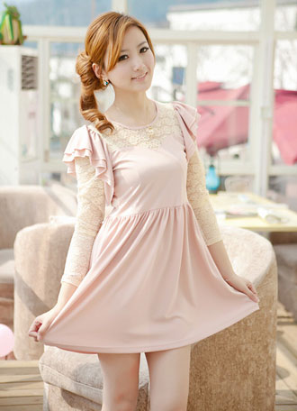 粉粉的颜色很衬皮肤,荷叶的袖子俏皮动人,蕾丝的拼接袖子,颇有几分性感迷人,穿上它立刻变身为可爱公主。