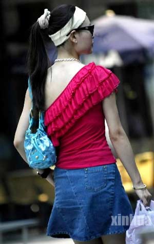 蓝的天,白的云,绿的梧桐,以及行走在鲜花盛开街道上的女子们的飘飘裙袂,让上海这座国际化大都市显得色彩缤纷。虽然上海35摄氏度以上的高温已经持续11天,但是不同年龄、界别的女士,尤其是妙龄少女,仍然将她们的性感曲线、青春魅力、鲜亮色彩尽情展现,带给人们美的享受,也给都市增添了一道靓丽的风景线。