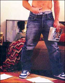 对于中年发福、下腹突出的男人来说,选择浅裤包、裆门上方钮扣位置较高、裤腰前后位置相差不大的低腰牛仔裤比较合适。穿上后,腹部有搁在腰上的感觉,与其说是为了掩饰体形,倒不如说是显示某种大腹便便的风度。而对于腹部浑圆呈鼓形的人来说,选择裤色深、裆门上方的钮扣位置较低、腰际前低后高的牛仔裤则穿着舒适。如果只是小腹突出,臀部又不大,可选上宽下松、颜色稍暗的牛仔裤,再配以颜色明亮的上衣,使视觉重心下移,减少腹部凸出之感。臀部瘦小的男性可穿任何形式的牛仔裤,但臀部肥大的男性尤其不要穿裤管窄紧的牛仔裤,以免使臀部显得更大。