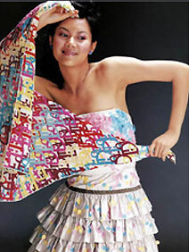 利用卡通人物或是充满童稚图形设计出来的丝巾,适用于活泼大方的搭配,尤其对于年轻女孩,是不错的点缀品。