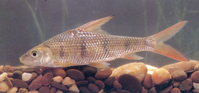 叶结鱼(Tor(Parator) zonatus)属鲤形目,鲤科,鲃亚科,结鱼属。俗称:五涧鲮、红尾勾、高鲮。英文名:Trilobed-lip barbel 。