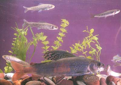 黑龙江茴鱼(Thymallus arcticus grubei)属鲑形目,茴鱼科,茴鱼属。俗称:斑鳟子、红鳞鱼、鱼华、海罗茨。英文名:Amur grayling , Arctic grayling 。