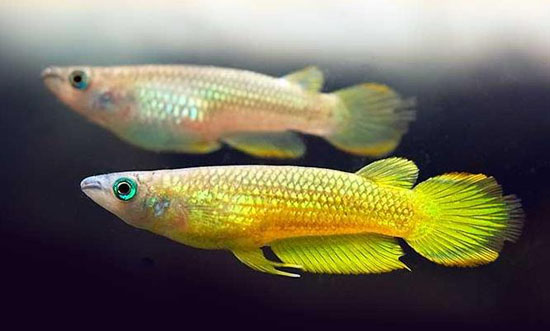 形体特征:因体型可算是单唇鳉属中最大的品种,体长可达10公分,所以其俗名成为黄金珍珠鳉。雄鱼体色光彩耀眼,全身闪烁着金黄色的光芒,十分美丽。