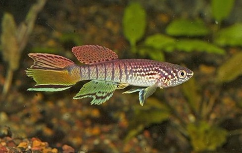 中文名:SJO鳉 英文名:Red Aphyosemion 学名:Aphyosemion sjoestedti 分布:非洲 形体特征:属于一年生鱼种,不过如果水族箱环境得宜,它的寿命可高达5年左右。雄鱼的鳃盖后方会出现3-4条与鱼体平行的淡红色线纹。 水质要求:25℃ pH7.5 繁殖:困难 食物:活饵