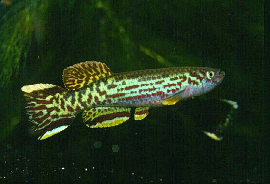 中文名:MAM鳉 英文名:Green-spangled Chocolate Killie 学名:Aphyosemion mamoratum 分布:西非 形体特征:和一般琴尾鳉相同都有高叉鱼鳍,体表上有红色斑点,中央泛着蓝色光芒,鱼鳍边缘是白色。雄鱼体色比雌鱼要更鲜艳一些。 水质要求:和同属鳉科鱼类似 繁殖:困难 食物:活饵