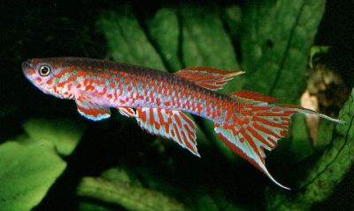 中文名:LAE鳉 英文名:Lambert`s Killie 学名:Aphyosemion lamberti 分布:西非 形体特征:体表上有数不清的红色斑点,鱼鳍也分布着许多斑点。雄鱼则有棕灰色的底色,也分布着许多红棕色的斑点。性情温和。 水质要求:18-22℃ 繁殖:困难 食物:活饵